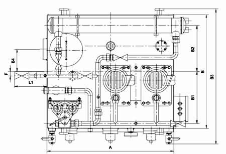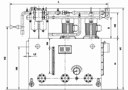 ≥250L/min稀油站,采用蒸汽加熱油箱中的潤滑油,儀表盤(pán)尚多一檢測冷卻器進(jìn)出水管壓差的儀表,其主要部件均另外裝于基礎上;而≤125L/min稀油站的全部部件都裝在油箱上,為整體式結構。