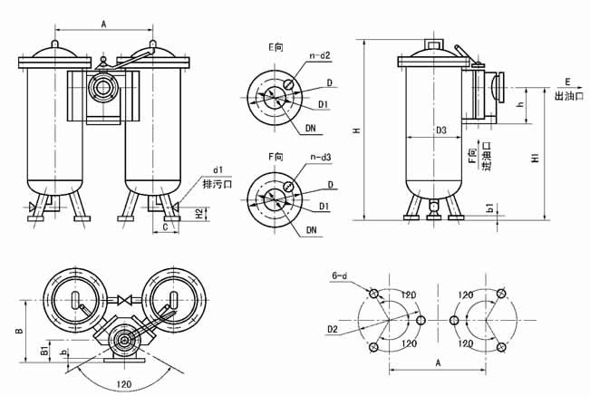 SLQ-32,SLQ-40雙筒網(wǎng)式過(guò)濾器(整體式) DN≥50的SLQ型雙筒網(wǎng)式過(guò)濾器(組合式)