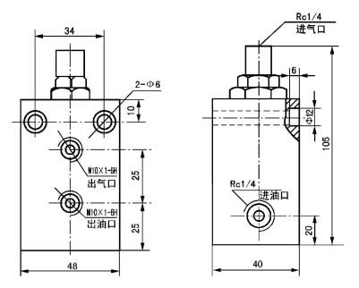 干油噴射控制閥適用于空氣壓力為0.45~0.6MPa 的干油噴射潤滑系統中,用于控制油路和氣路的干油噴射嘴。該閥與干油噴射嘴配合使用,組成干油噴射潤滑裝置時(shí),該閥與手動(dòng)潤滑泵連接長(cháng)度不得大于1 米。